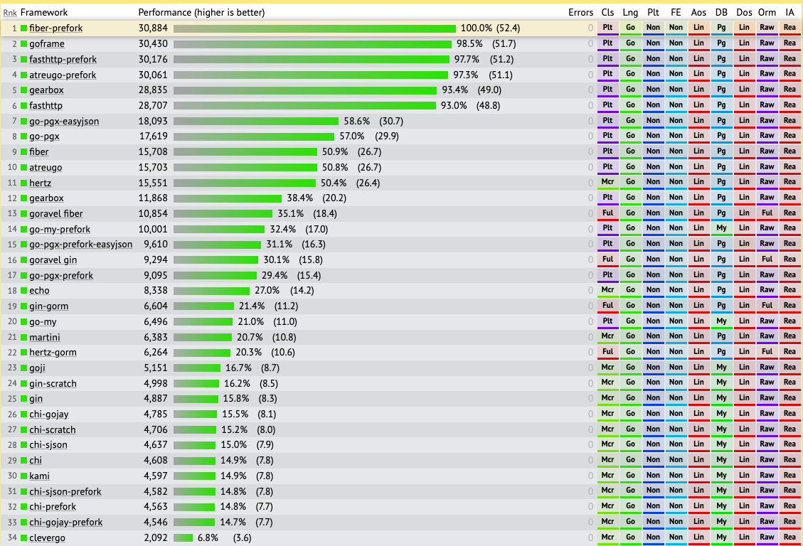 Fiber handled 30,884 responses per second with an average latency of 16.5 ms.